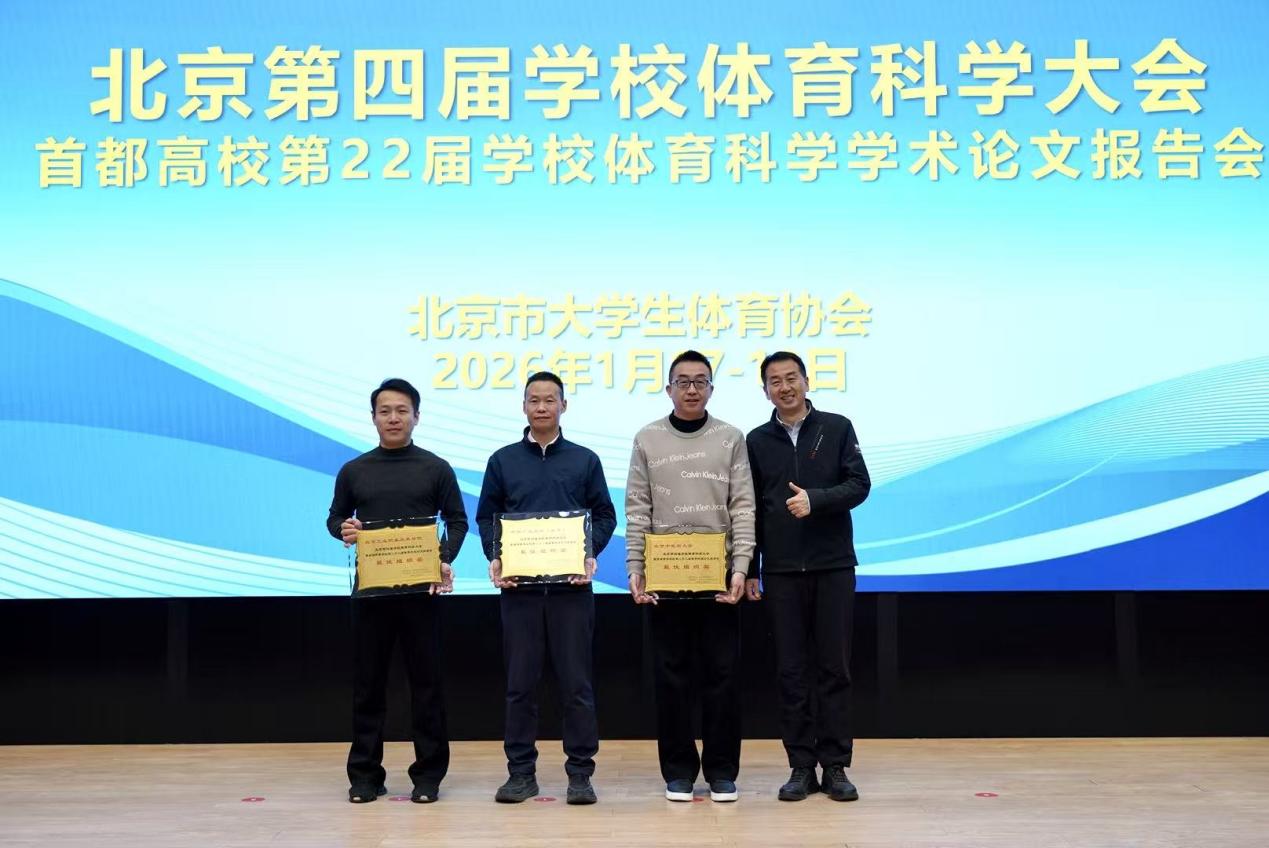 2026年1月17—18日北京市第四届学校体育科学大会暨首都高等学校第二十二届体育科学论文报告会在国科大雁栖湖校区成功举办。大会由北京市教委指导、北京市大学生体育协会主办,聚焦新时代学校体育高质量发展,围绕体育课程改革、体育大思政融合等议题深入研讨。我校体育部教师团队积极参会并斩获多项荣誉,荣获 “最佳组织奖”充分彰显了我校体育教研实力与体育育人工作成效。
